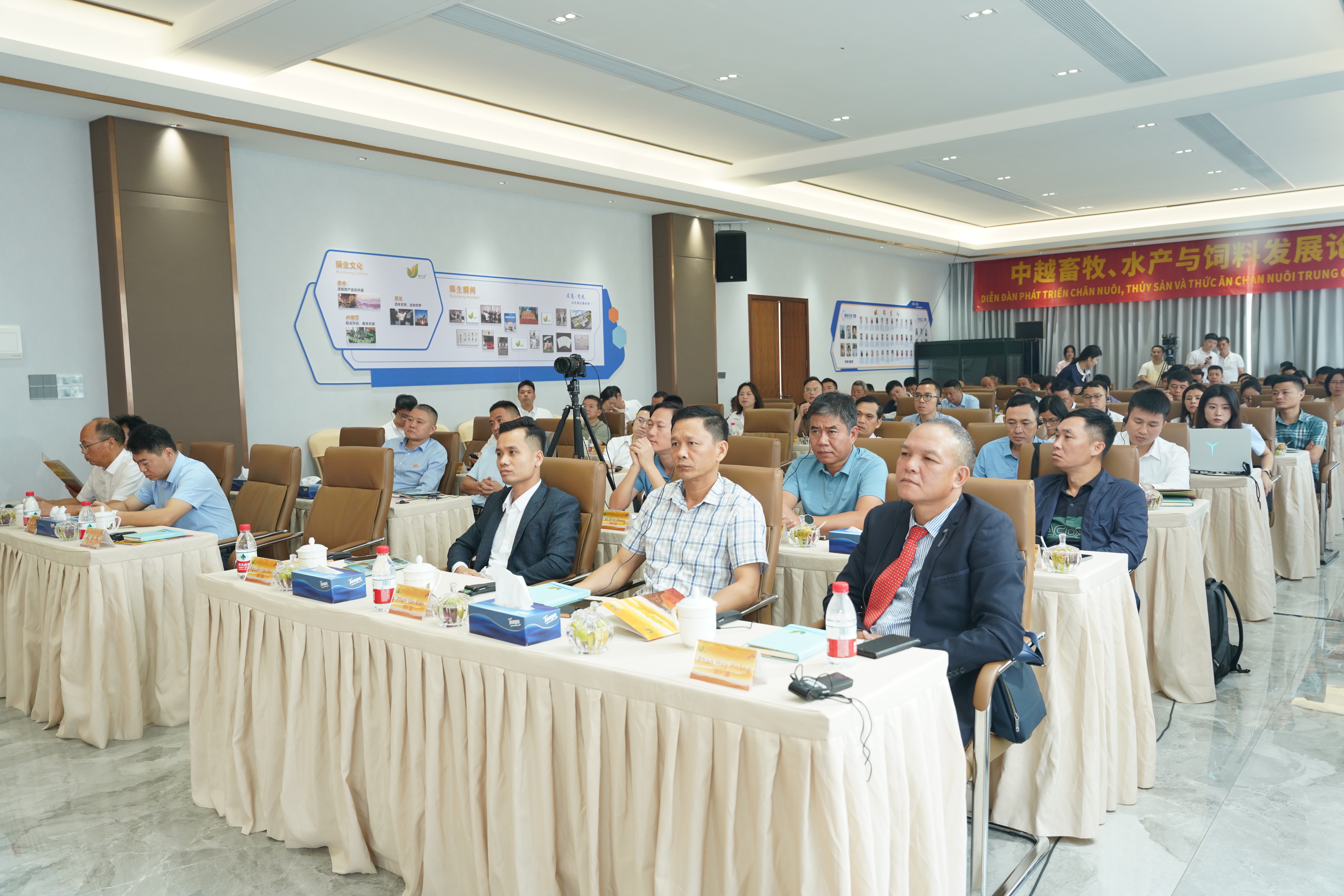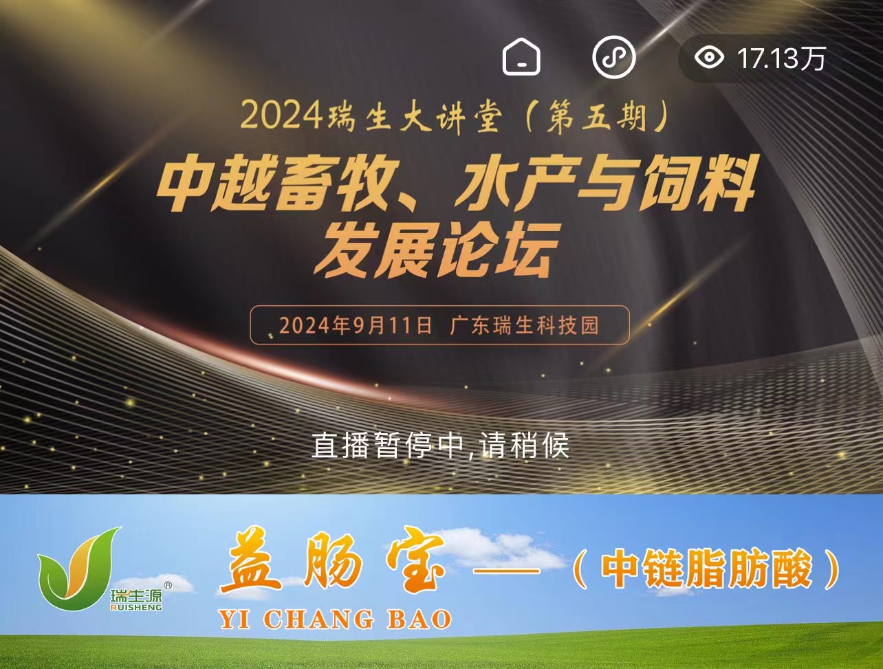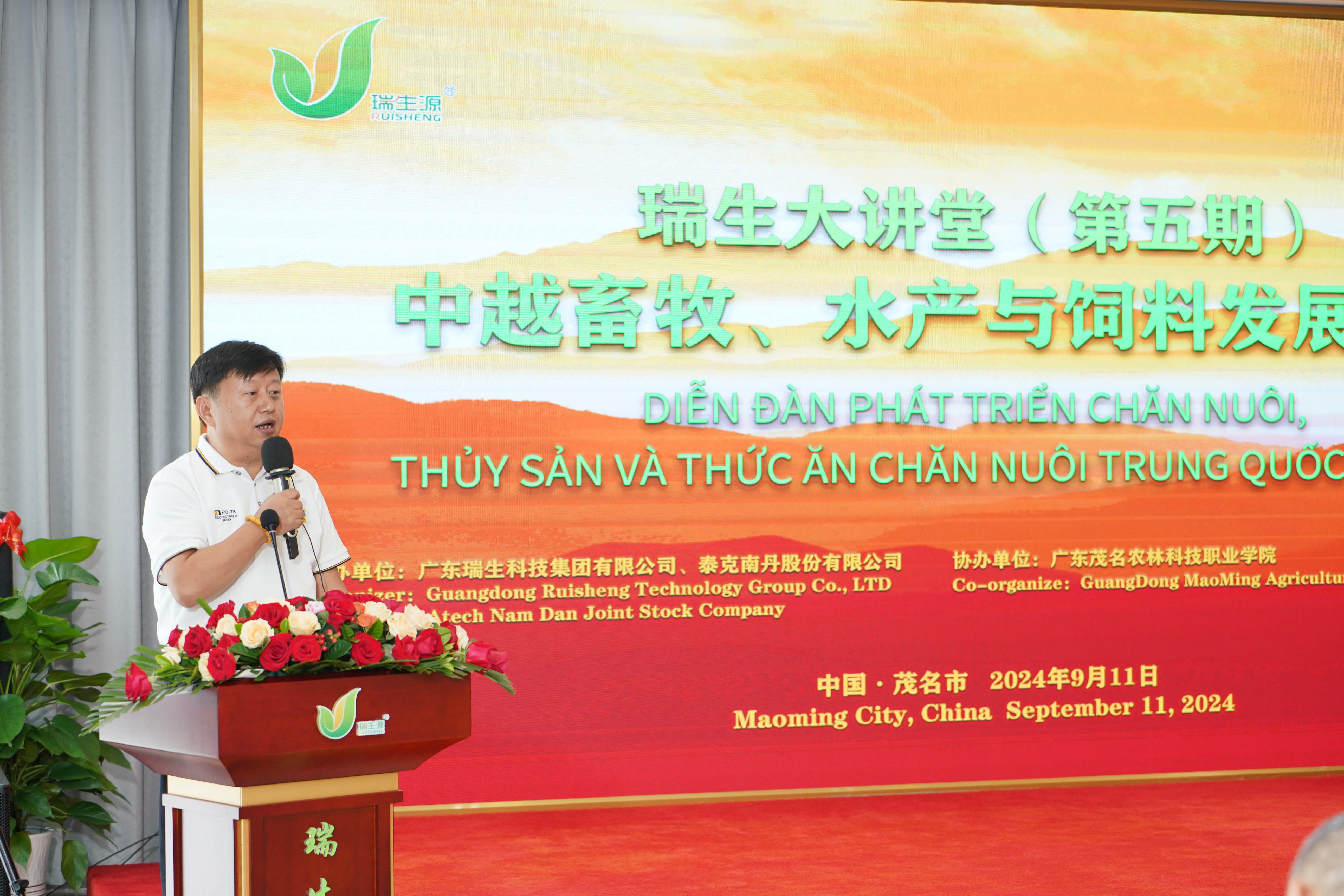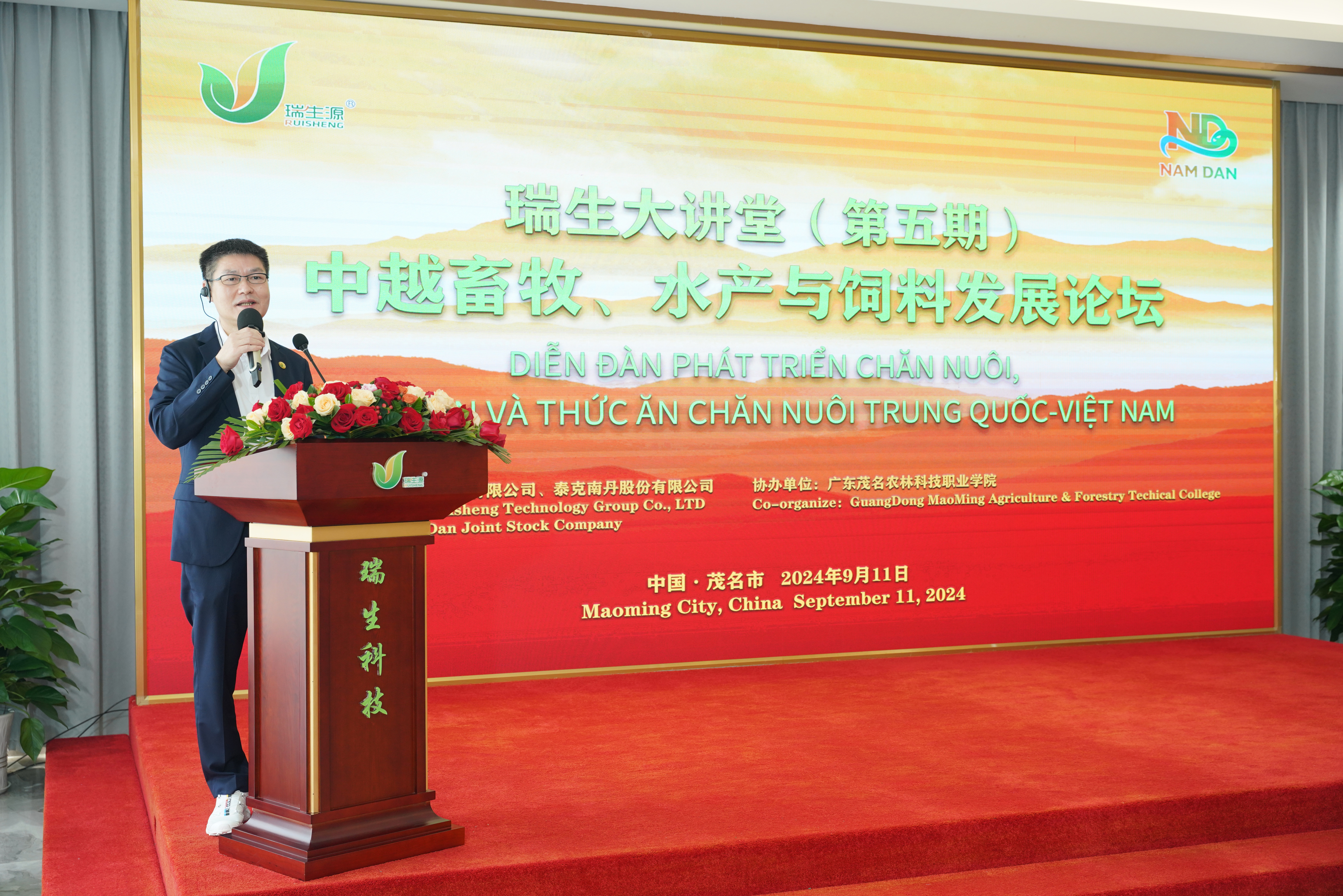 On September 11, 2024, Guangdong Ruisheng Technology Group Co., LTD. (hereinafter referred to as "Ruisheng Group") held the fifth Ruisheng Lecture Hall and the China-Vietnam Forum on Animal Husbandry, Aquaculture and Feed Development, titled "Leap · Innovation, Hand in Hand for the Future". A total of 47 Vietnamese enterprises in the feed and animal husbandry industry were specially invited. Nearly a hundred people, including well-known experts in domestic animal husbandry, entrepreneurs, and partners of Ruisheng, attended the meeting. Meanwhile, this lecture hall was live-streamed online simultaneously. According to statistics, the number of online viewers who watched the live stream exceeded 170,000 on that day.