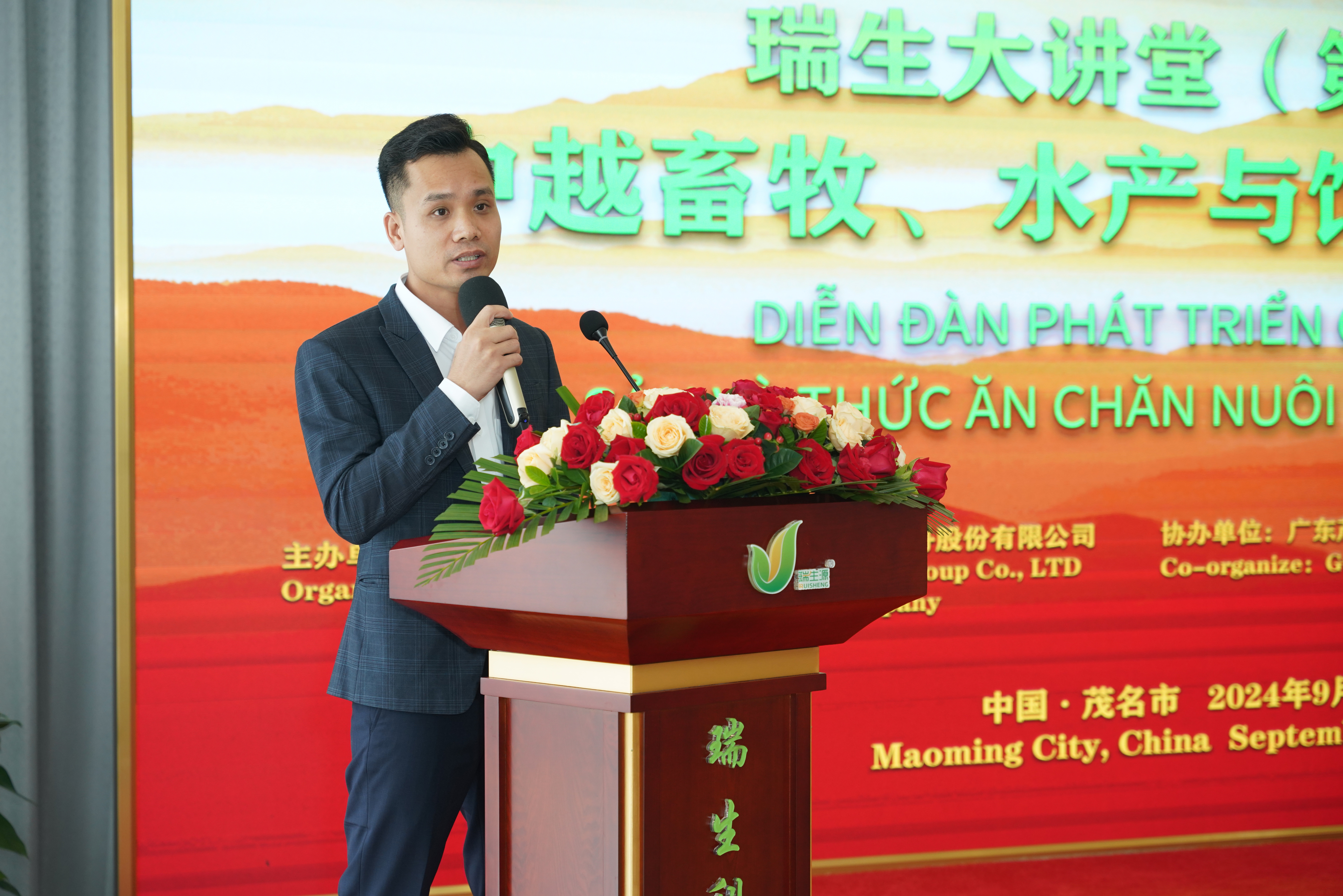 At the beginning of the meeting, Mr. Lin Yisheng, the chairman of Ruisheng Group, delivered a speech. The Ruisheng Lecture Hall, adhering to the principle of "information transmission, technological innovation, exchange and learning, and joint development", has been successfully held for four sessions. China and Vietnam are connected by mountains and rivers and have a profound friendship. The aquaculture, animal husbandry and feed industries are of great significance to the economies and people's livelihoods of the two countries. China and Vietnam each have their own strengths in these fields and are highly complementary. China has rich experience in technological innovation and market expansion, while Vietnam has unique characteristics in terms of resource advantages and industrial chain integration. Through this forum, we hope to build a platform to promote in-depth exchanges between enterprises and experts of the two countries and drive the high-quality development of industries on both sides.