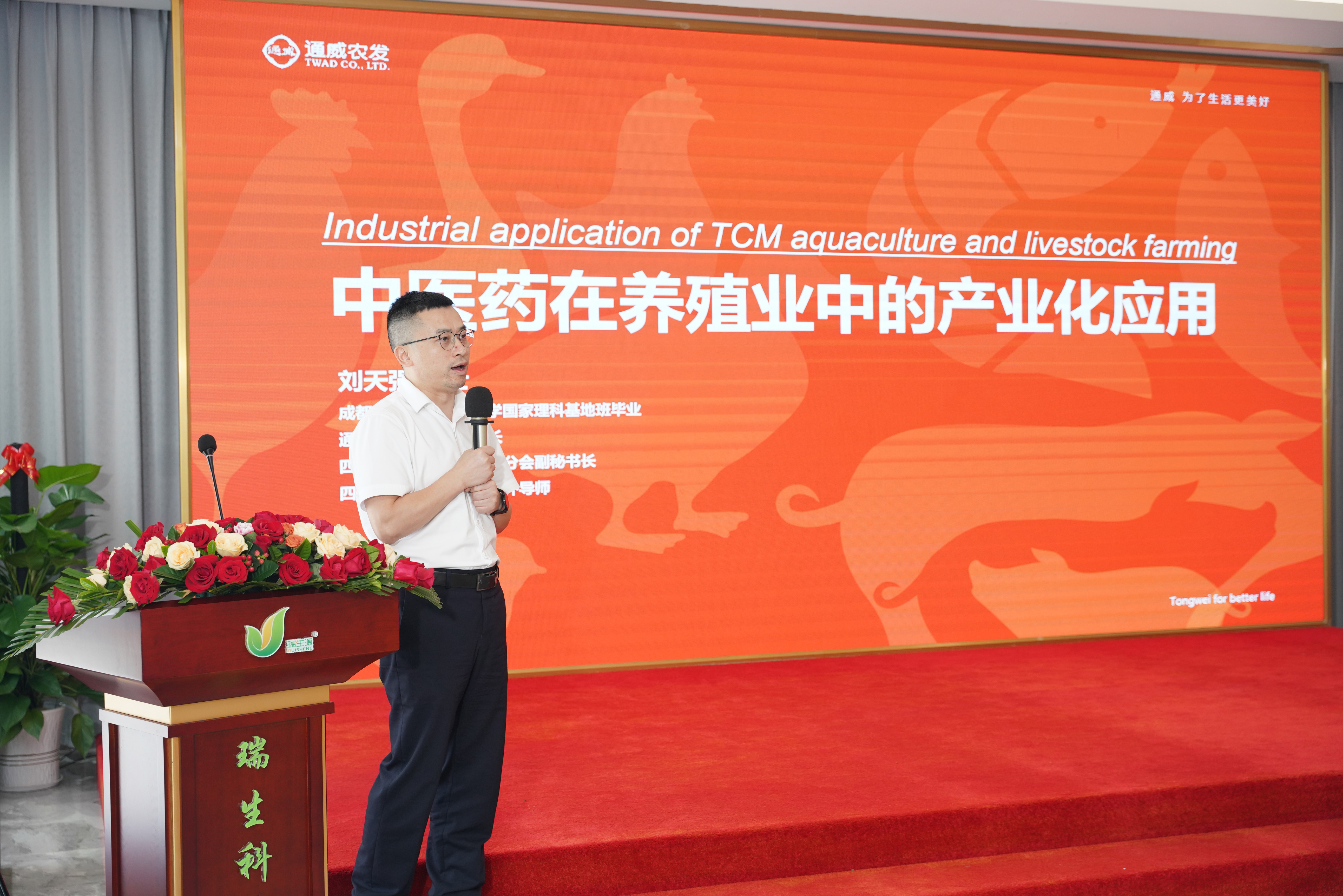In modern animal husbandry, the industrial application of traditional Chinese medicine in the breeding industry is becoming increasingly widespread. Dr. Liu Tianqiang, the director of the Major Customer Department of Tongwei Agricultural Development Co., LTD., has explored a new model of healthy animal production in China by integrating the industrial model of "traditional Chinese medicine + animal husbandry" in terms of the current predicament of livestock, poultry and aquaculture, as well as in the prevention of diarrhea in pigs, diarrhea in calves, prevention of non-clean blue, prevention and control of salpingitis in laying hens, and prevention and control of aquatic diseases.