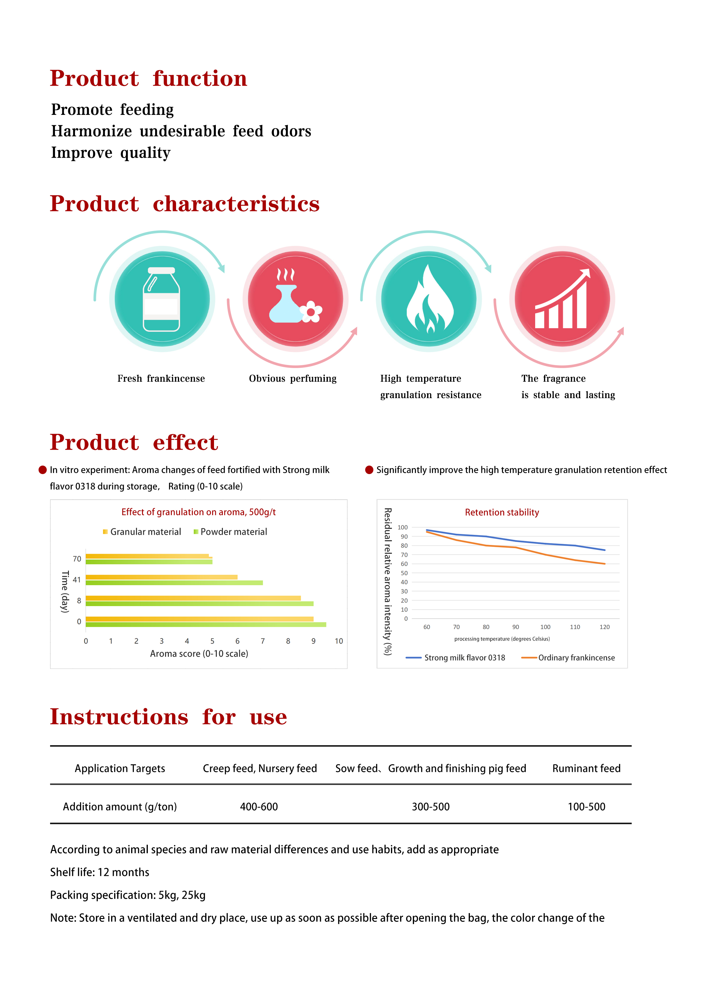 Give feed fresh milk flavor, improve feed palatabilityImprove feed intake, increase the competitiveness of feed products